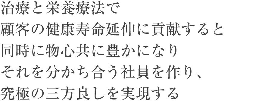 患者様、社員、会社 -すべてが幸せになる「究極の三方良し」を追求します。